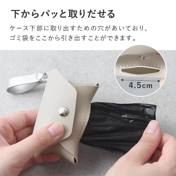 すぐに使いたいのにバッグの中に入れていると出すのに時間がかかったり、持ち歩くのを忘れたりすることも。そんなときに便利なのがこちらの「ゴミ袋ケース」です。