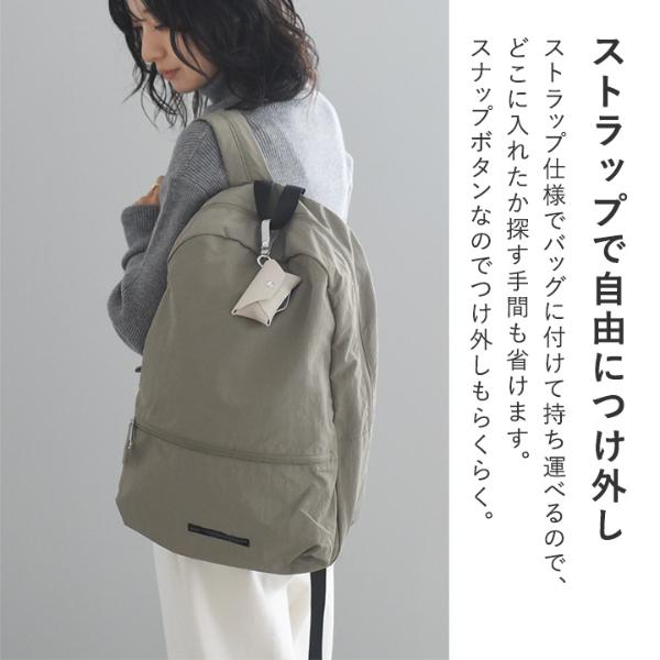 ストラップで自由につけ外しストラップ仕様でバッグに付けて持ち運べるので、どこに入れたか探す手間も省けます。スナップボタンなのでつけ外しもらくらく。