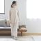 シンプルなルームウェアですが、着てみると実感するのはその着心地の良さ。ウールによく似たアクリル混素材で作られていることで、じんわりあたたかいのが特徴です。