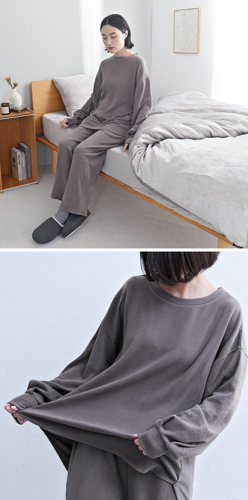 - ふんわり柔らく暖かいリラックスウェア。しっとり柔らかな肌心地と、じんわり優しいぬくもり。肌ストレスのない着心地で、丸一日着ていたくなる冬のルームウェアです。