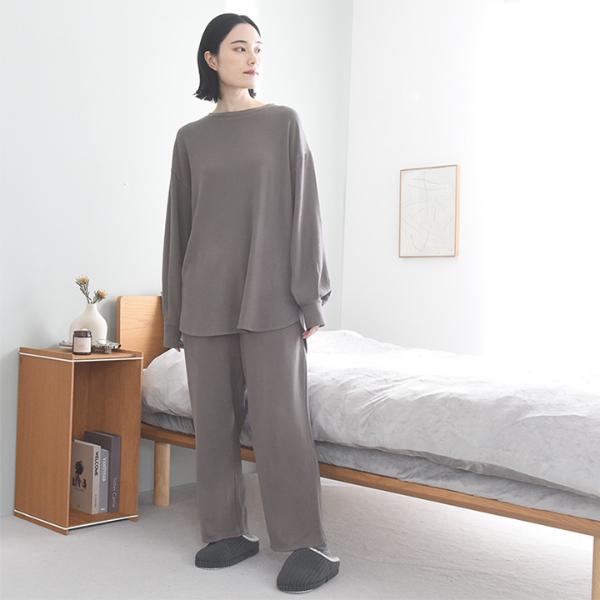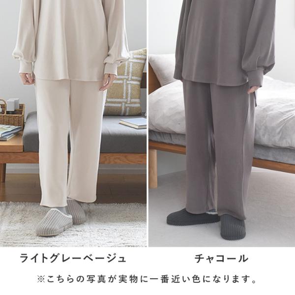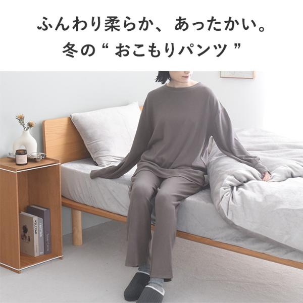 ふんわり柔らく暖かいリラックスパンツ。しっとり柔らかな肌心地と、じんわり優しいぬくもり。肌ストレスのない着心地で、丸一日着ていたくなる冬のルームウェアです。