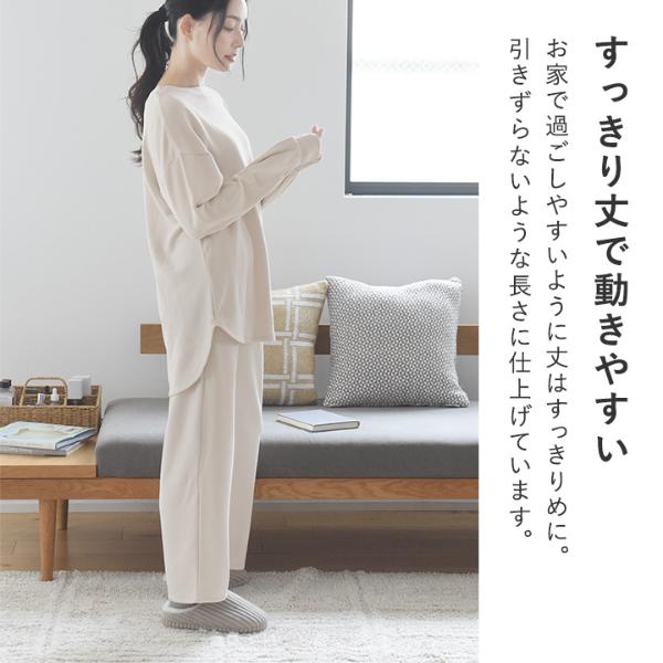 お家で過ごしやすいように丈はすっきりめに。引きずらないような長さに仕上げています。