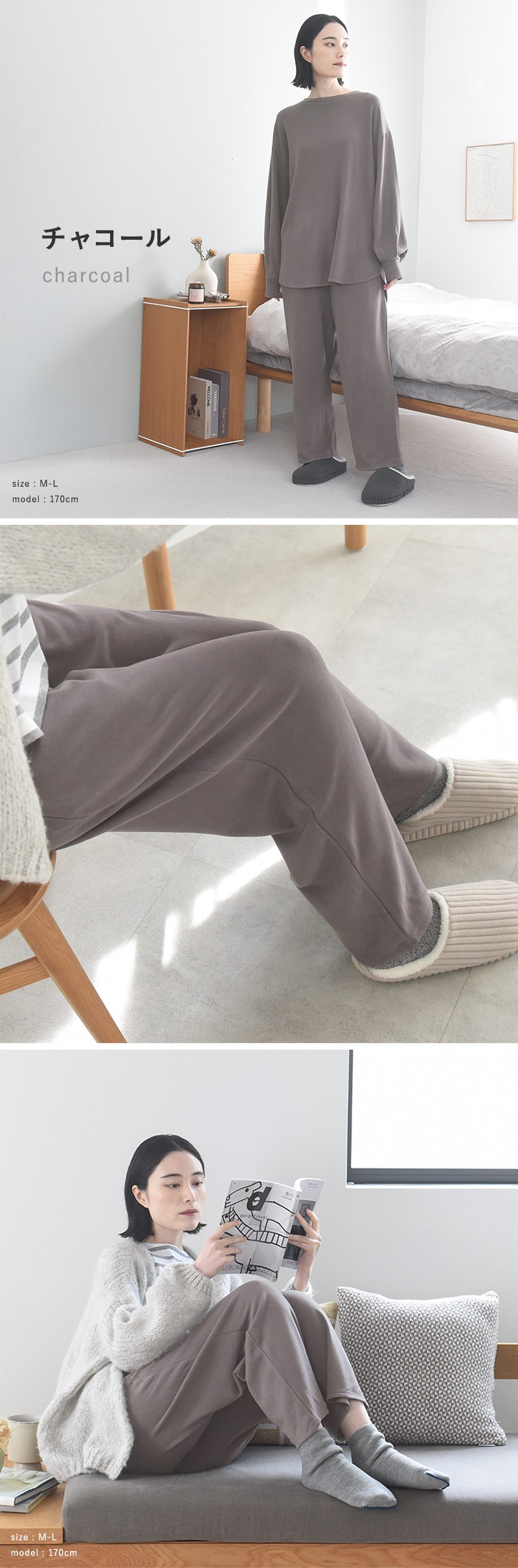 くつろぎタイムにぴったりの、落ち着いたトーンのチャコール。