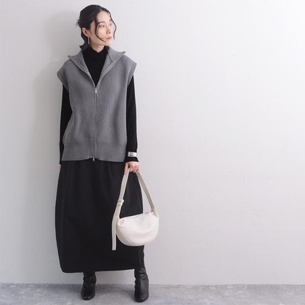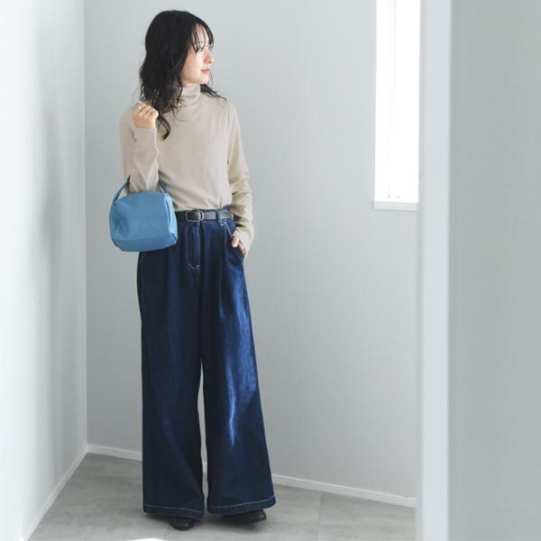 こなれ感のあるハイネック折り返しても、クシュッとしてもサマになるタートルネックデザイン。2枚仕立てになっているので、適度にハリがあり程よく形を保ってくれます。