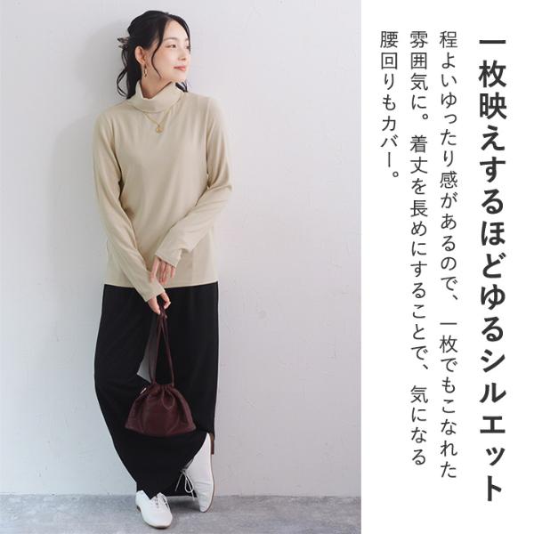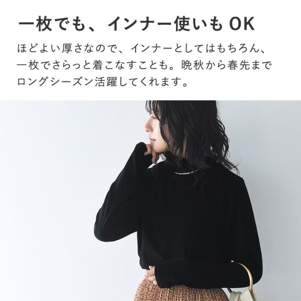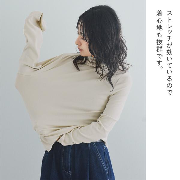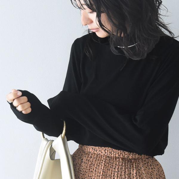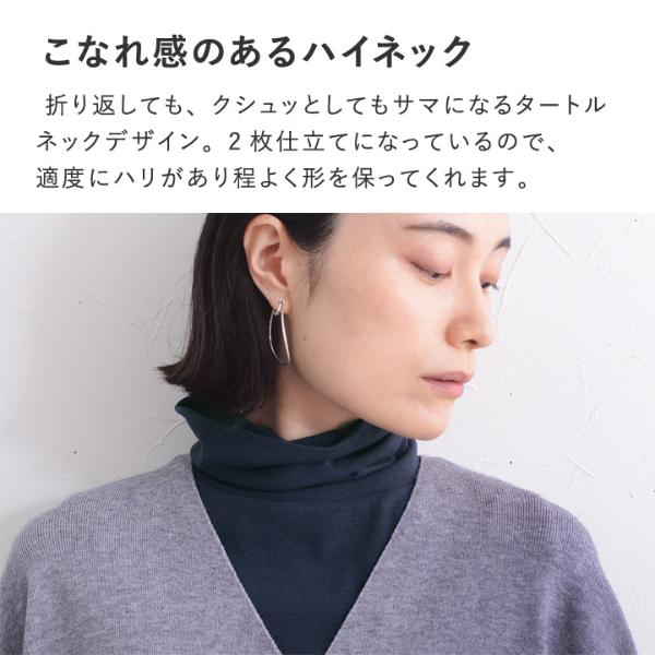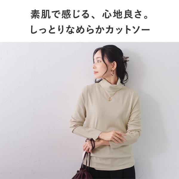 しっとりと柔らかな肌触りに思わずうっとり。チクチク感も一切なしで素肌がよろこぶ、ハイネックカットソーです。