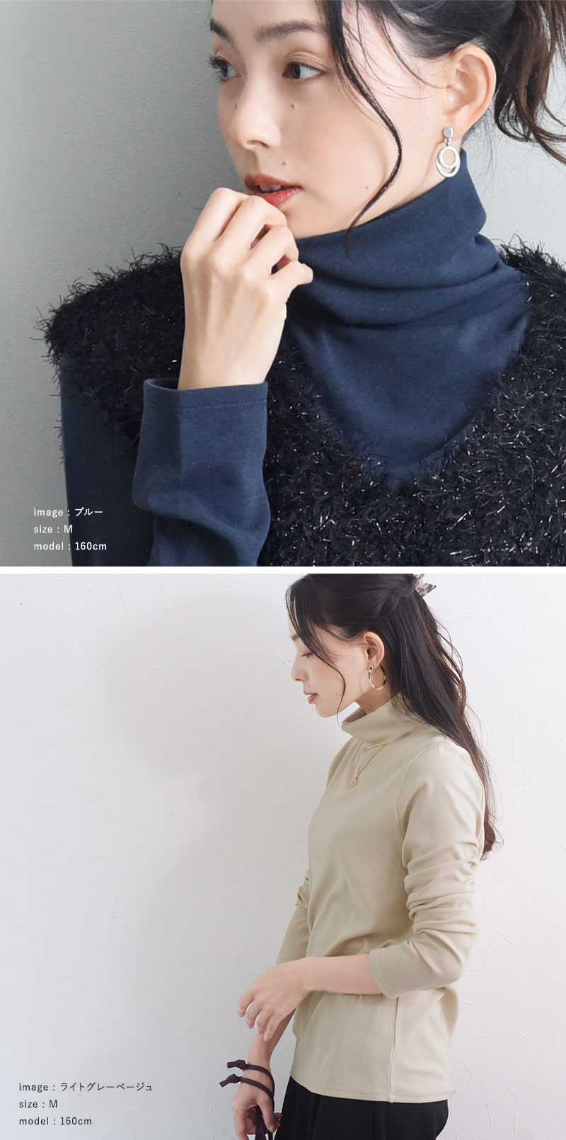 しっとりと柔らかな肌触りに思わずうっとり。チクチク感も一切なしで素肌がよろこぶ、タートルネックカットソーです。