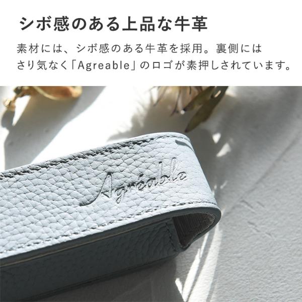 素材は牛革を採用し、上品な雰囲気に。使えば使うほどに味わいが増し、愛着が湧いてくる革アイテムです。