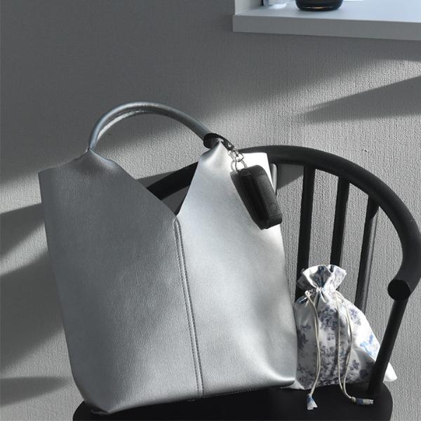 素材には、シボ感のある牛革を採用。内側には光沢感のあるグログラン生地を使っています。金具はシルバーで統一し、キレイめバッグにもカジュアルバッグにも馴染むように。