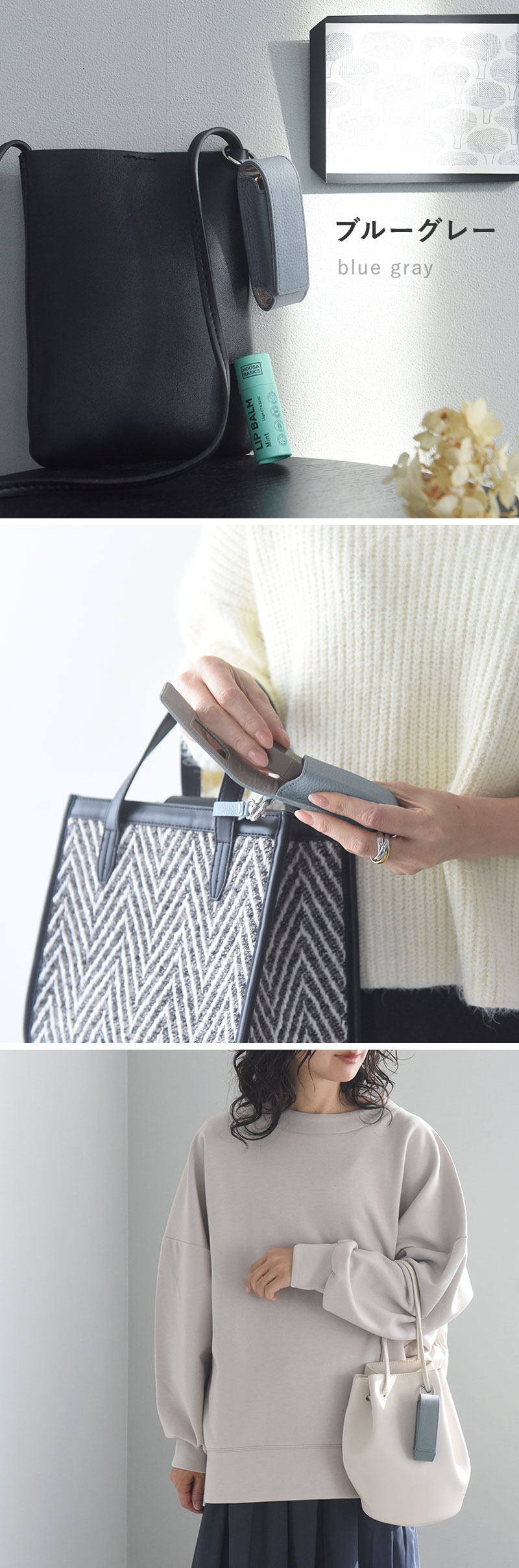 落ち着いたトーンのブルーグレー。バッグのワンポイントにも。