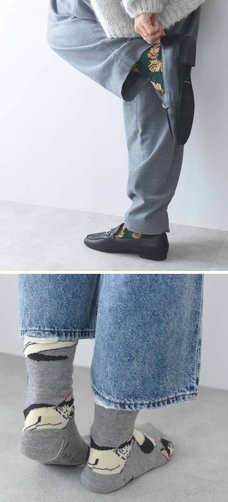 ※使用している糸の違いにより、デザイン毎に生地の厚みやかかとからつま先の長さが多少異なる場合がございます。