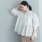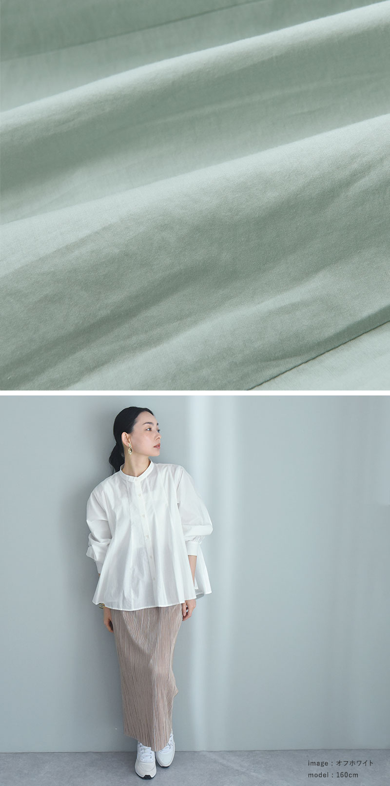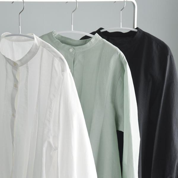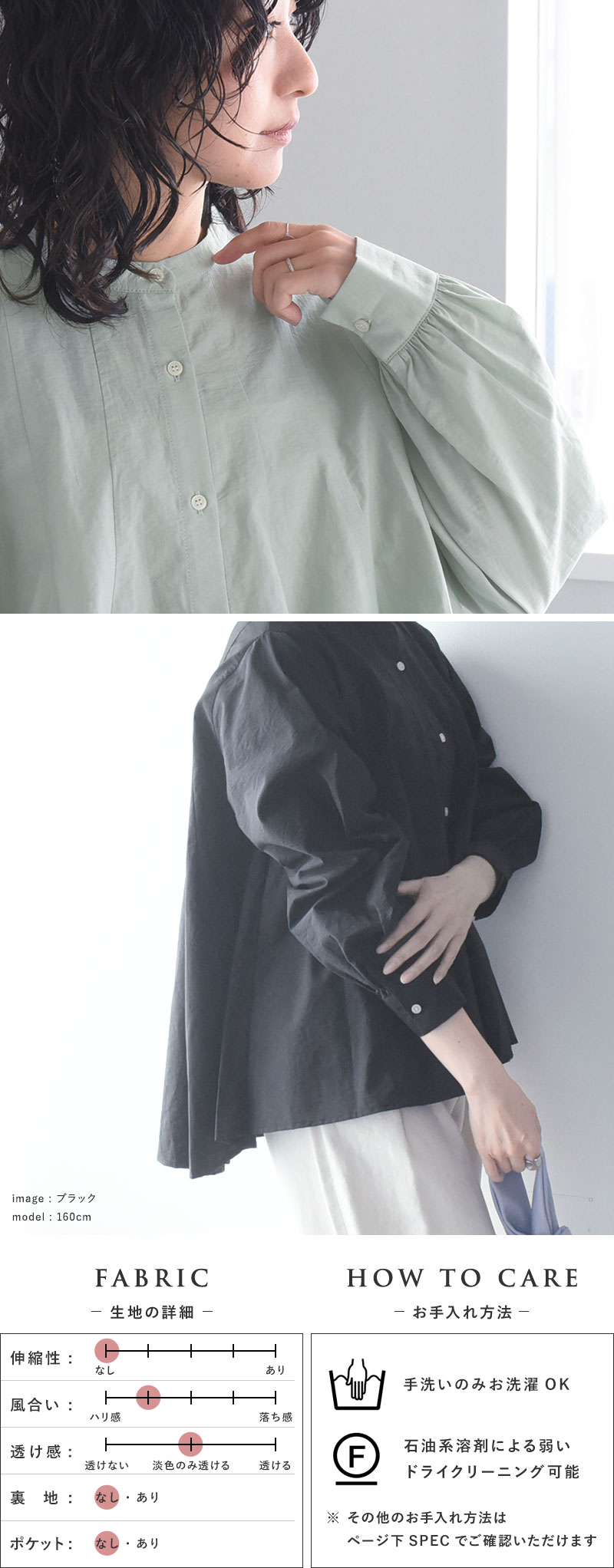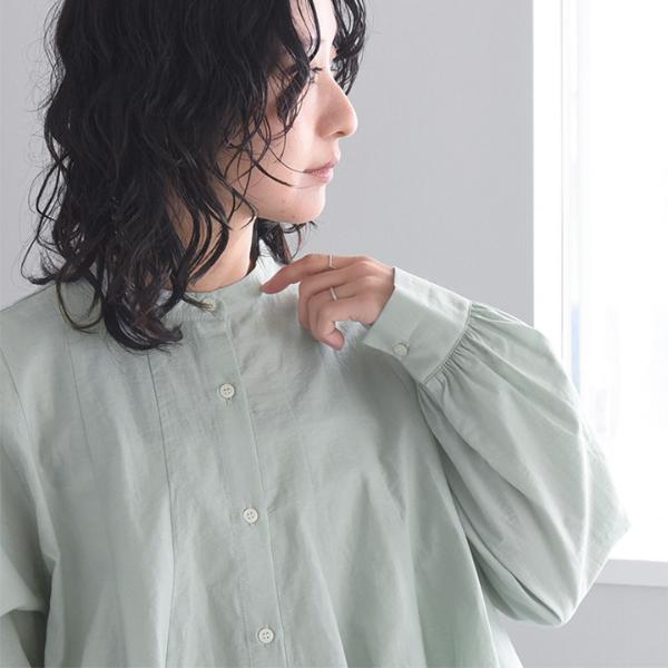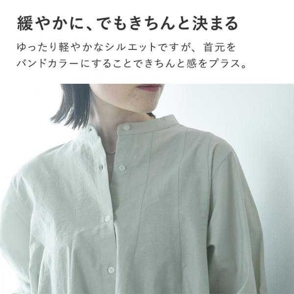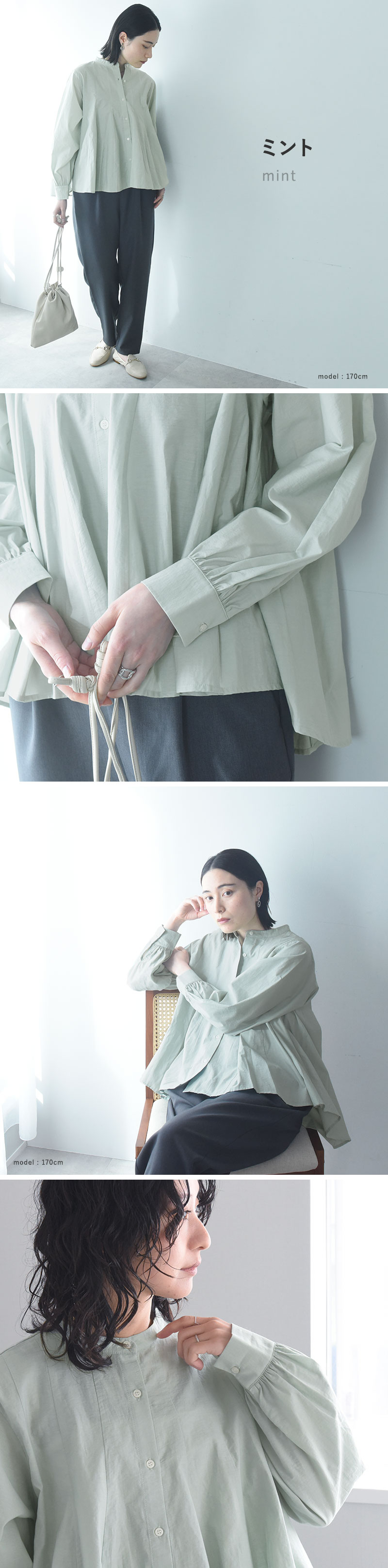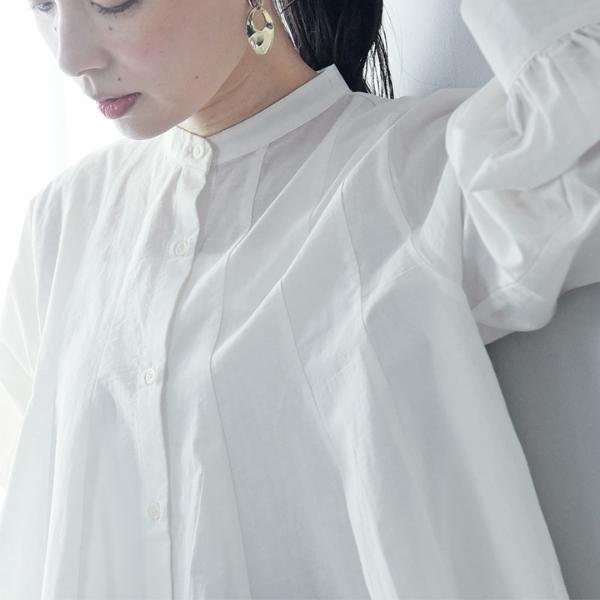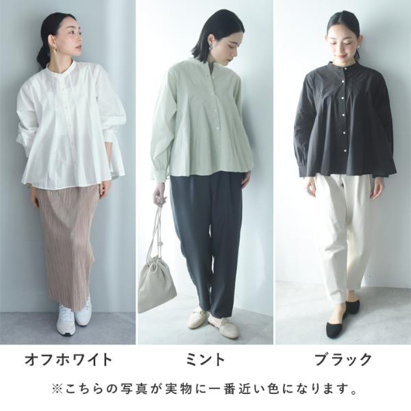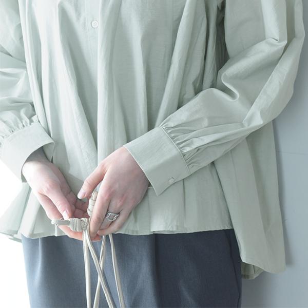 - ウエストインせずともそのままで着映えるシルエット。裾がふわりと広がったフレアデザインですが、実は縦の切り替えラインで引き締め効果も。春の定番ブラウスです。