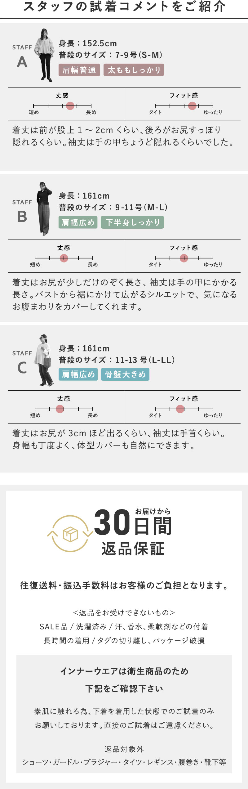 ※この製品は、直射日光や蛍光灯などの照明に長時間当たると、変色したり色あせすることがあります。ご着用の 際や洗濯時における干し方、保管にご注意ください。