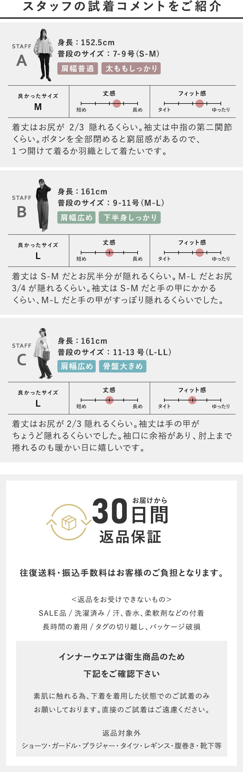 着丈:前見頃約60cm 後見頃約62cm/前見頃約61cm 後見頃約64cm