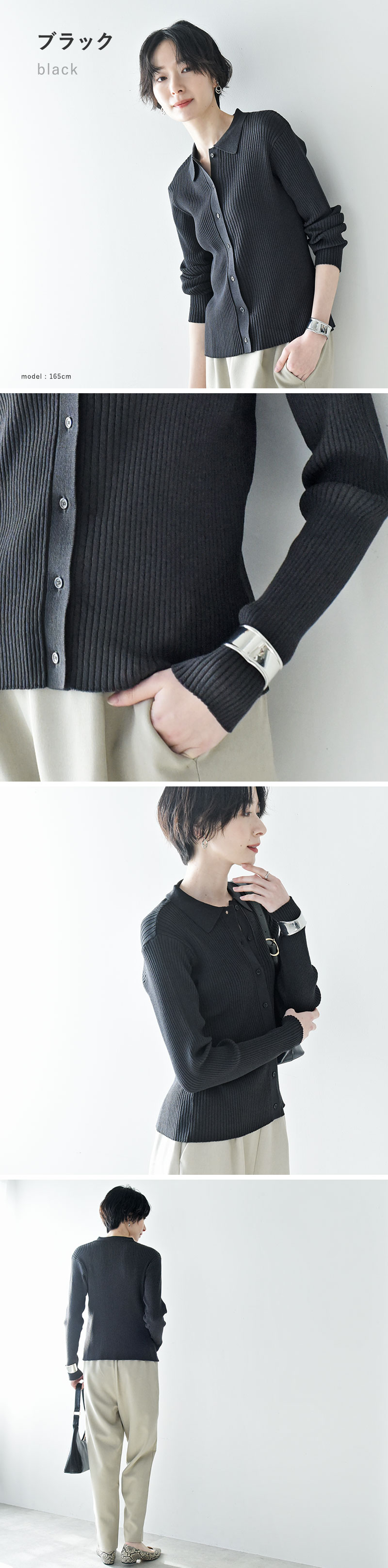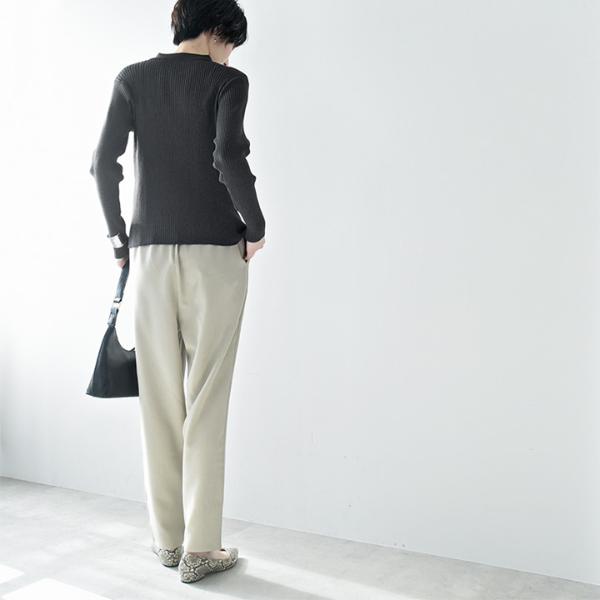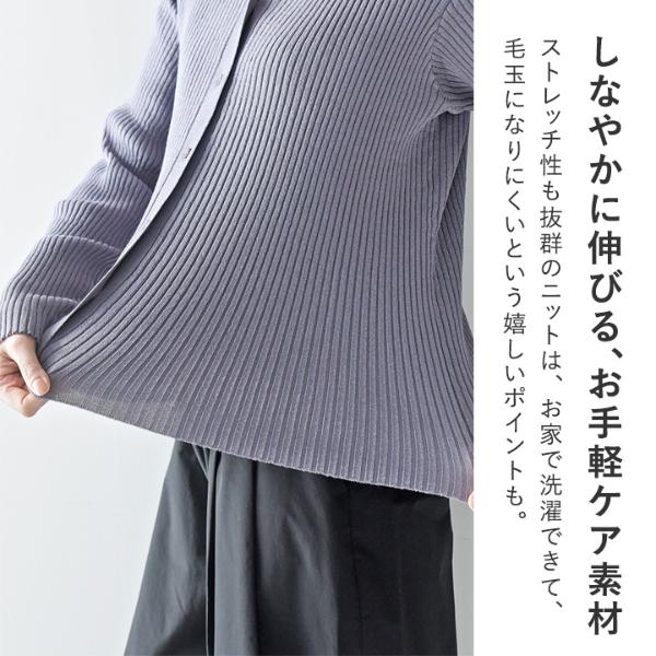ほどよく厚みのあるリブ編みで、ストレッチ性も抜群。ニットですがお家で洗濯できて、毛玉になりにくいという嬉しいポイントも。
