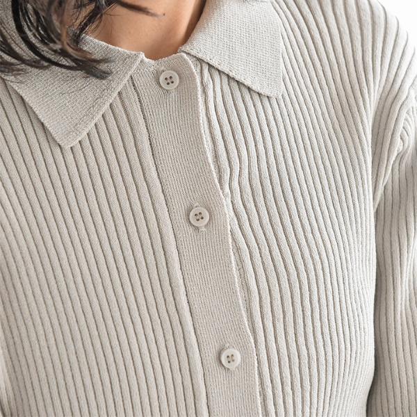 寒い冬にお世話になったコートを脱いで、身も心も軽やかにファッションを楽しめる季節。ちょこんと襟のついた、ポロニットが登場しました。