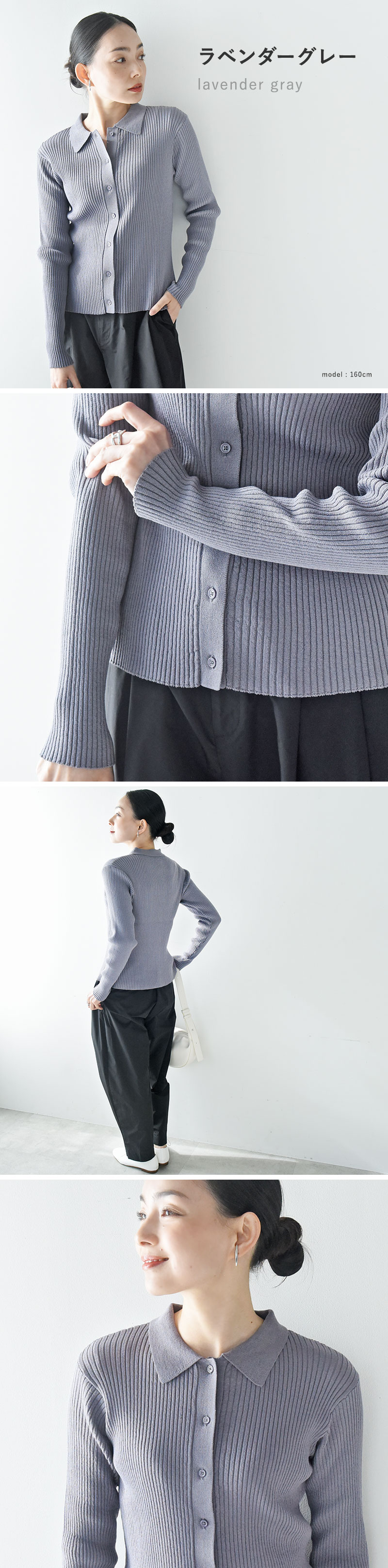 ニットならではの柔らかさでラフに着られるけれど、きちんと見えるデザイン。普段のお出かけはもちろん、お仕事や学校行事などかしこまった日にも自然になじんでくれます。