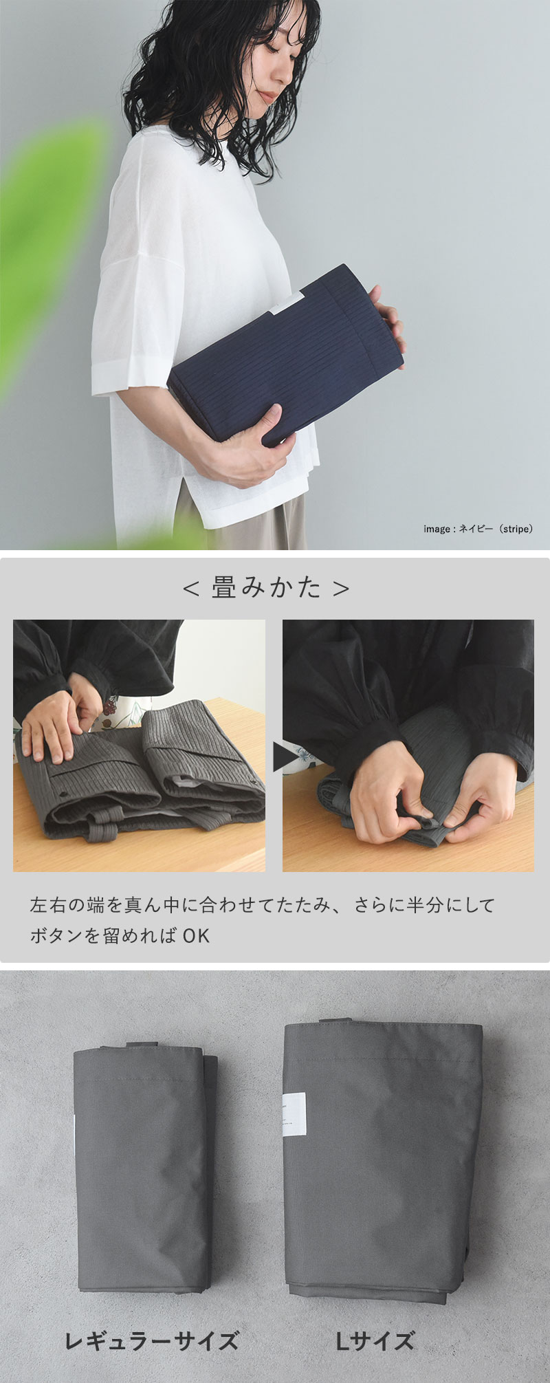 小さくたたんでスナップボタンで留めれば、持ち歩くときや使わない時もコンパクトに。