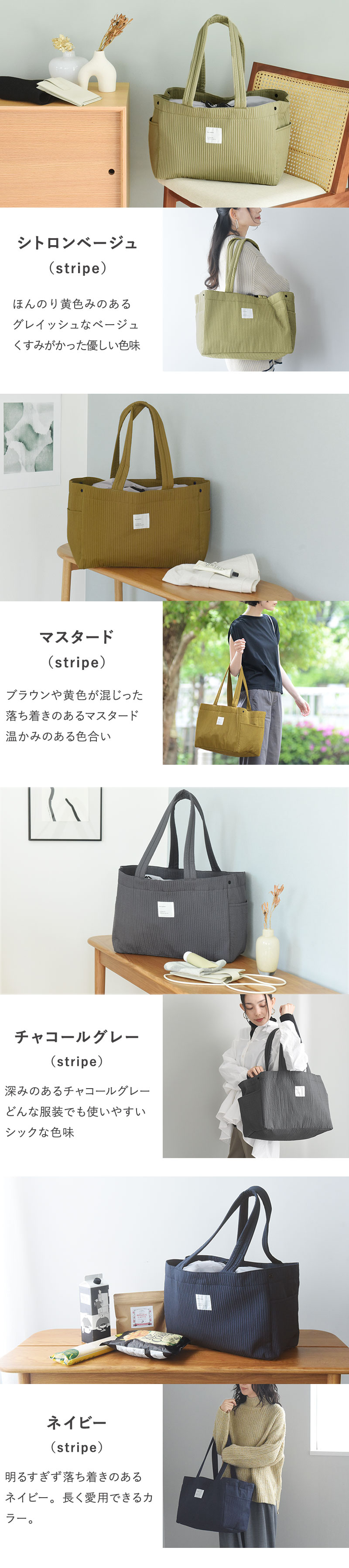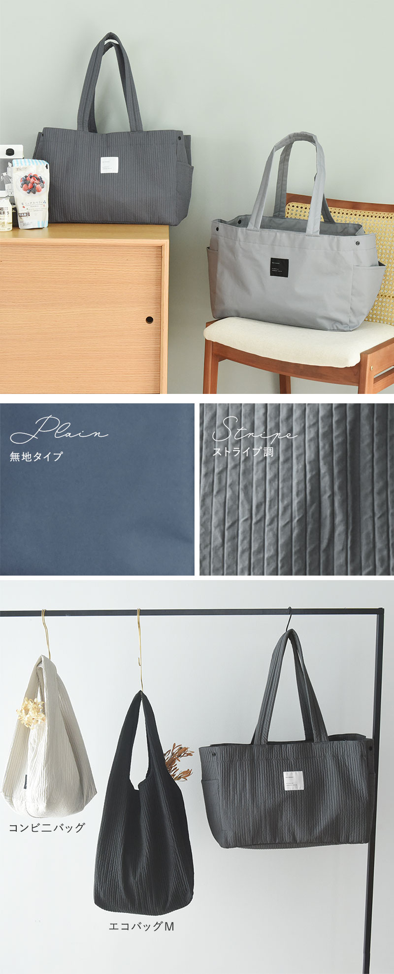 bon moment(ボンモマン)の「コンビニバッグ・エコバッグM」のストライプと同じ素材を採用しています。