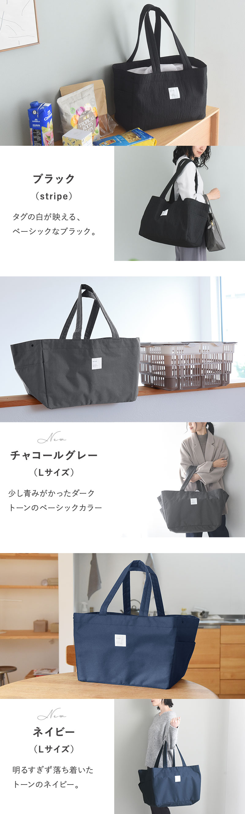 ロングセラーの買い物かごバッグシリーズに、大容量の「Lサイズ」が仲間入り。一般的な買い物カゴがまるっと入るサイズ感なのでMyカゴ派さんにも◎です。