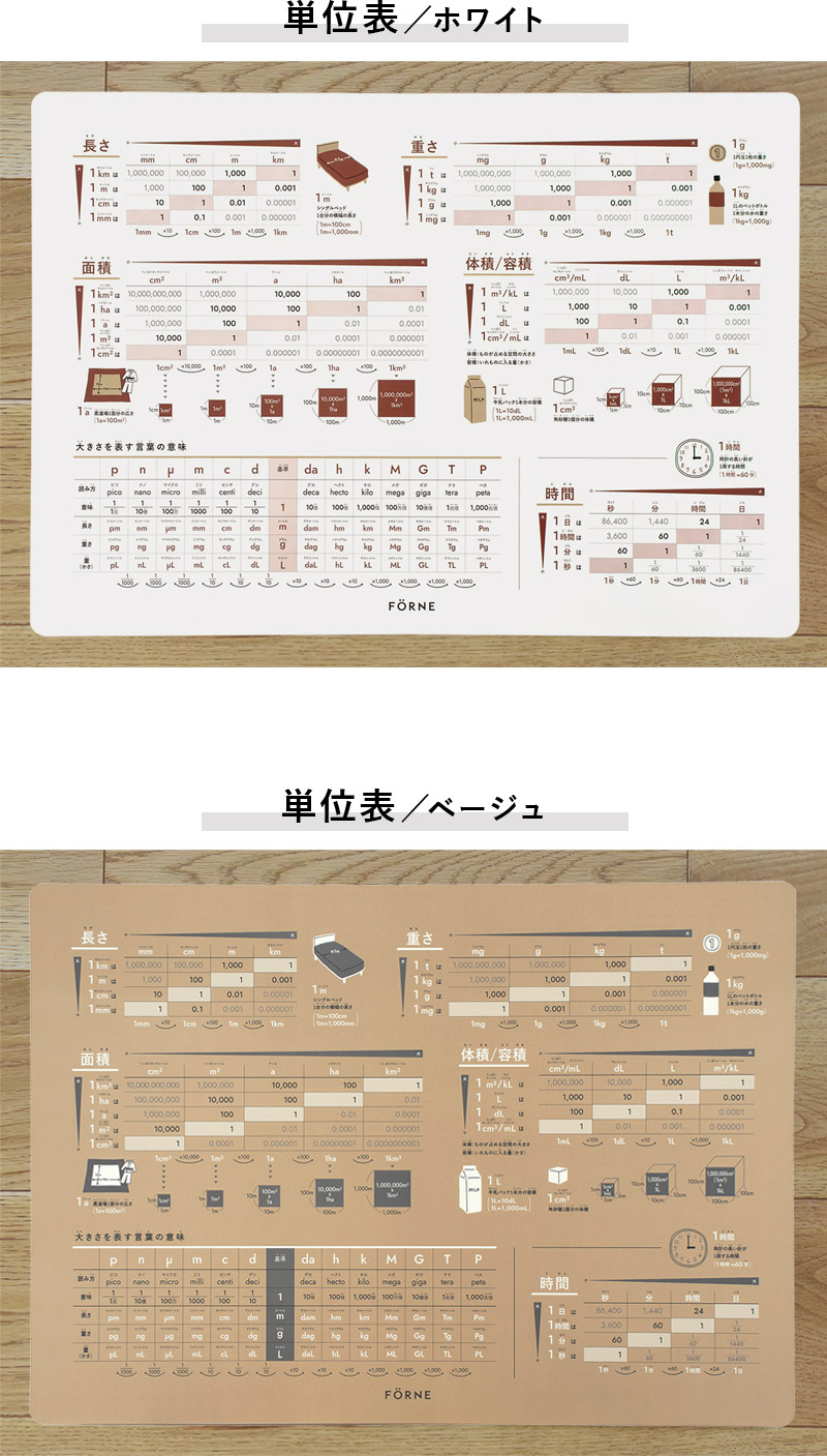 小学校の教科書に出てくる単位換算を、一覧で確認できる単位表ポスター。「1Lって何dL?」「1cmは1mmの何倍?」と迷ったときに、自分で調べて確かめられるつくりです。宿題の途中や日常生活の中で、ちょっと確認したいときに役立つ一枚です。