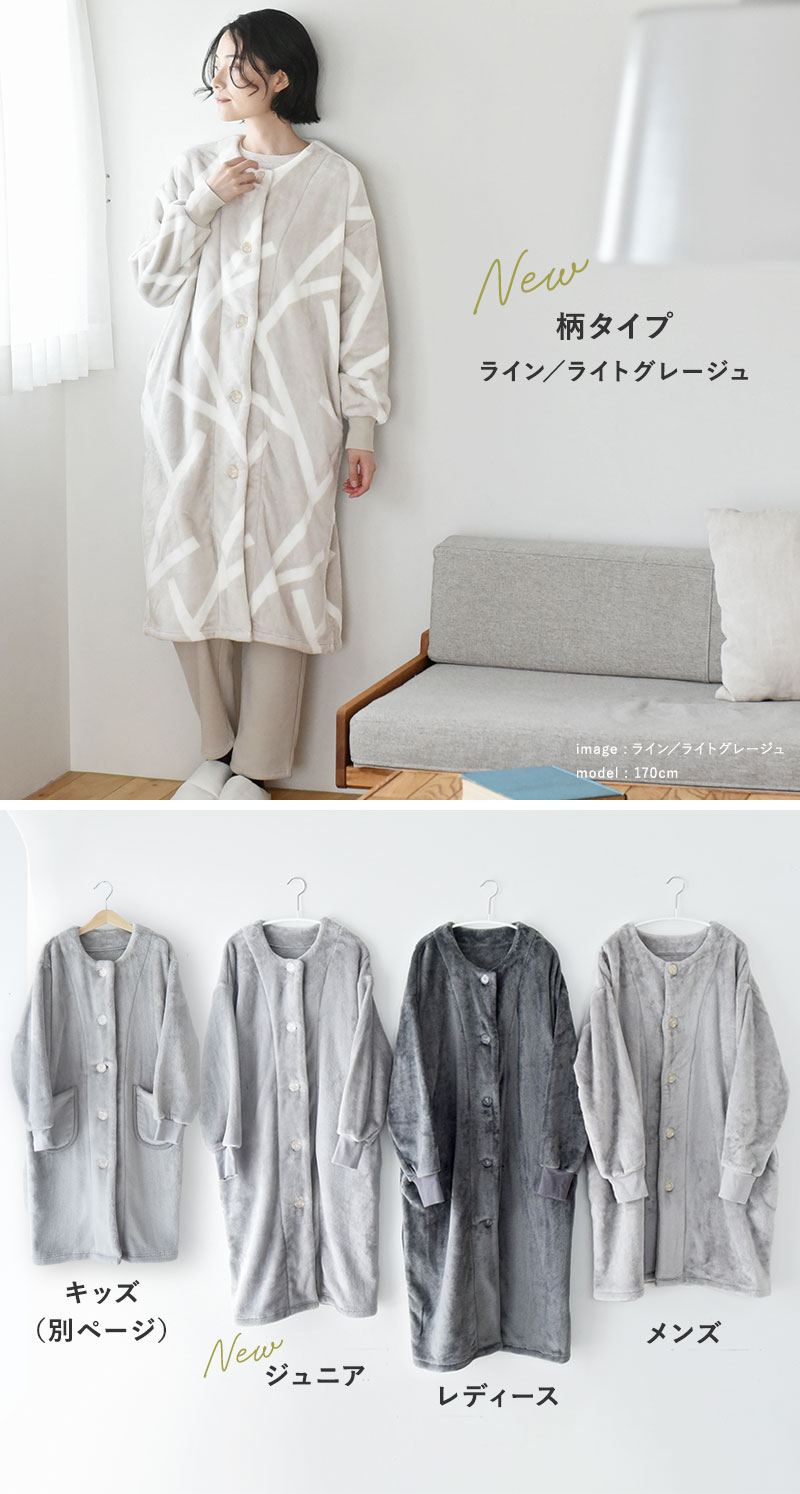 ガウンコート風のデザインだから、ゴミ捨てにちょっと羽織って行くことも。冬のおうち時間に、まるっと1日活躍してくれます。