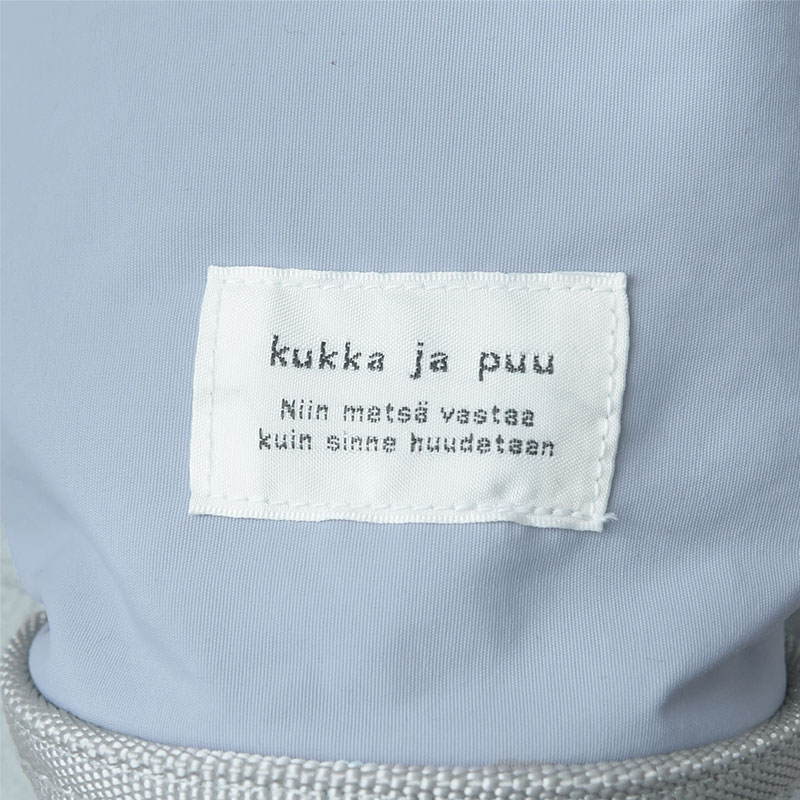 Point4:ブランドタグのアクセント正面には、「花と木のようにすくすく元気に育ってほしい」と願いを込めた「kukka ja puu」のタグを。無地のシンプルな本体のアクセントになっています。