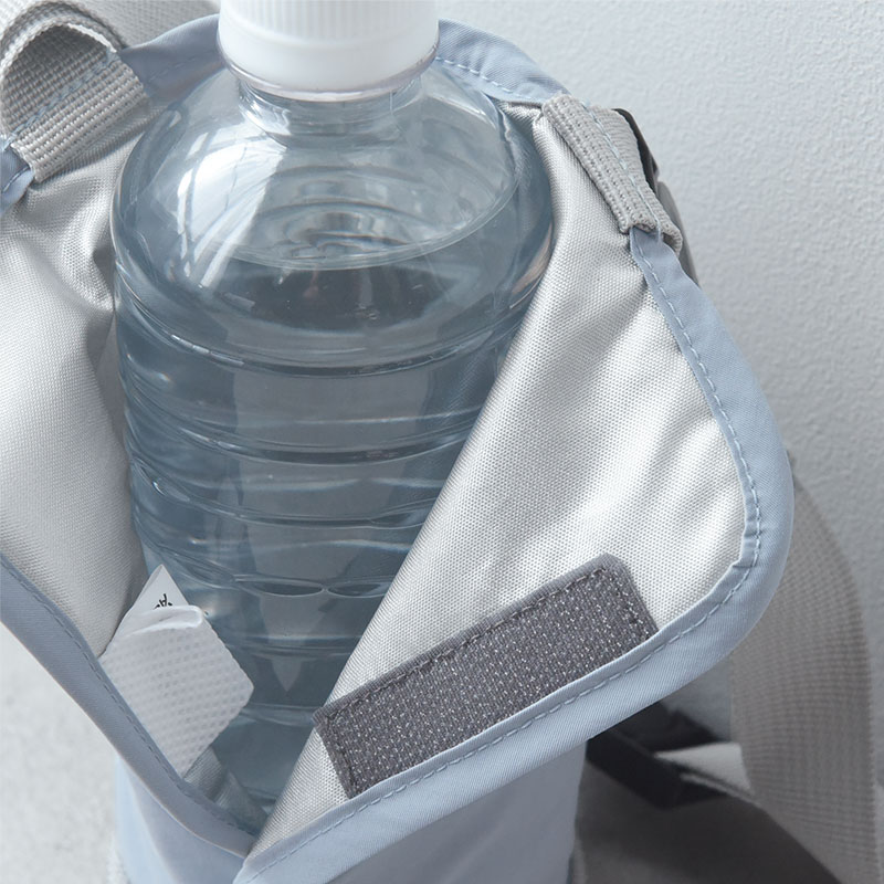 内側には保冷素材のアルミシートを使用。夏場に冷たいペットボトルを持ってお出かけする時にも重宝します。