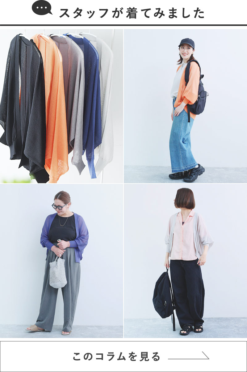 暑い日はノースリーブやフレンチスリーブで涼しく過ごしたいけれど、二の腕が露わになるのはイヤ。そんな夏に嬉しい、多機能素材のカーディガンです。
