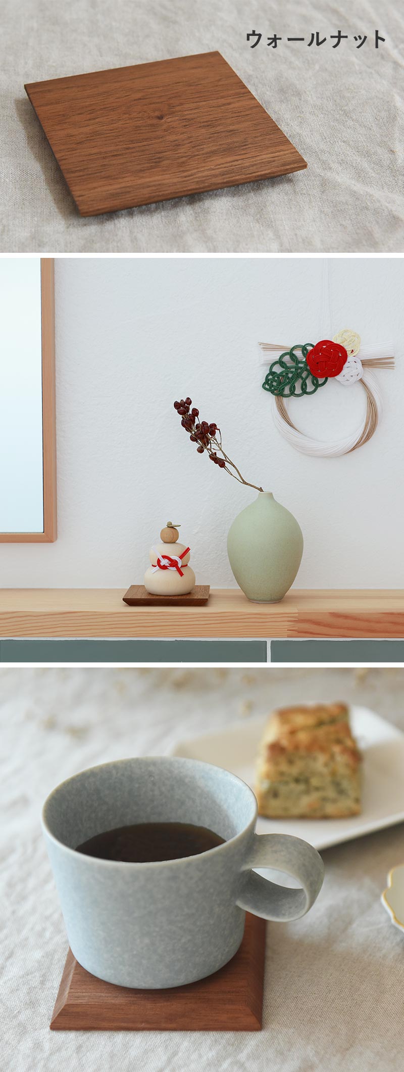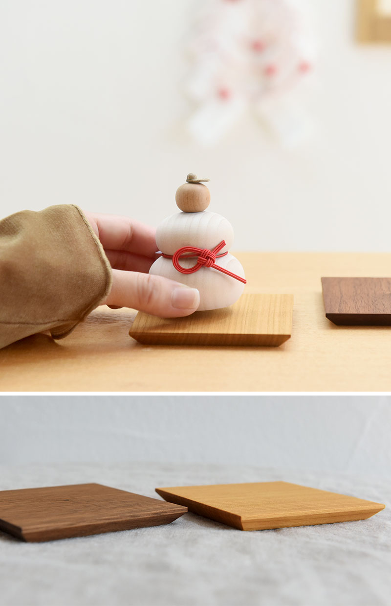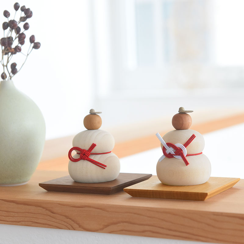 - 小さな木の鏡餅オブジェにぴったりの天然木の台座。旭川の木工クラフト専用メーカーで作っていただきました。鏡餅飾りだけでなく、ほかのお正月を飾っていただくのもOKです。