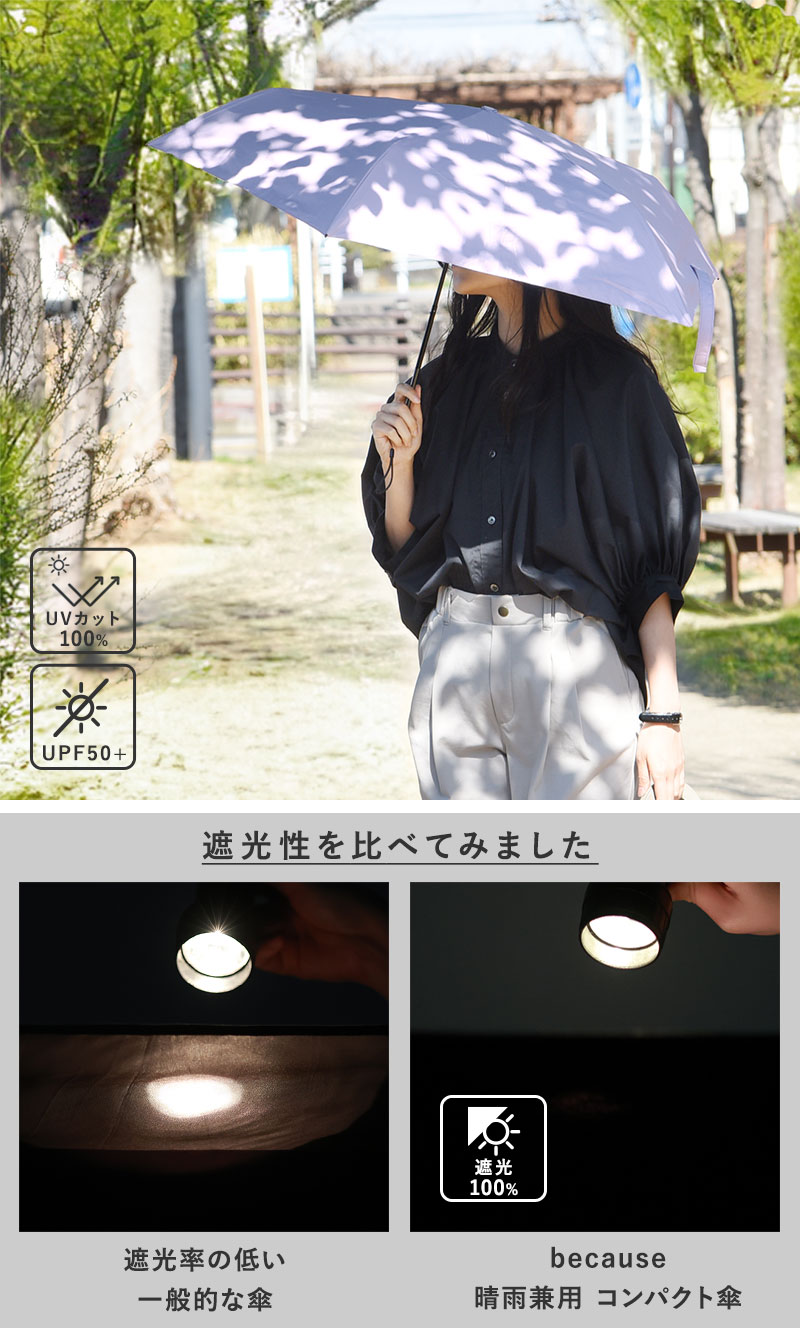 - UVカット率、遮光率100%を誇る機能派の日傘。ミニバッグにすっぽり入るコンパクトさで、スマホよりも軽い120g。カバンに入れっぱなしでもノンストレスな折り畳み傘です。