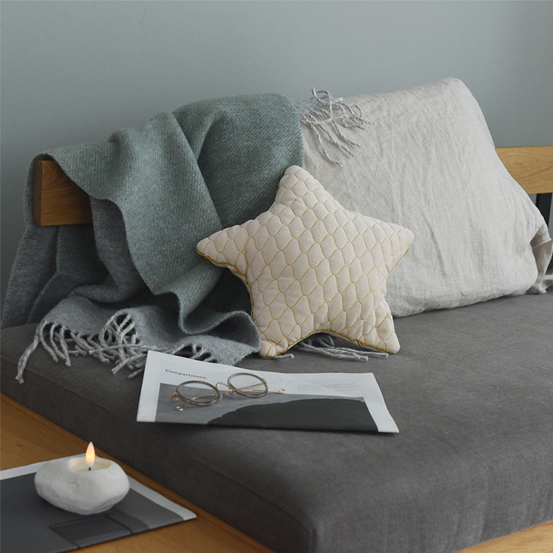 柔らかなベルベットコットン素材が、冬のぬくもりを感じさせてくれるクッション。ツリーやお星様のシルエットに、ゴールド/シルバーのステッチが施されています。