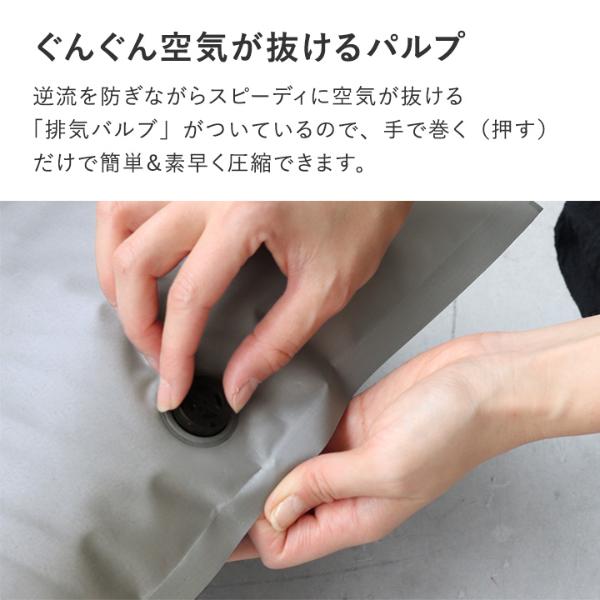 空気の逆流を防ぎながらスピーディに空気が抜ける「排気バルブ」がついているので、簡単&素早く圧縮できます。