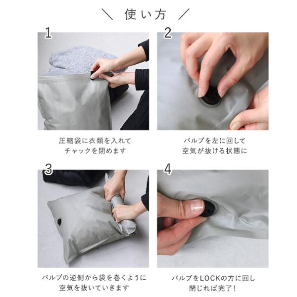 空気をスムーズに排出するバルブ付きで、強い力をかけずにペタンコに!シーズンオフの衣類やかさ張る毛布をぎゅっと圧縮、ぱんぱんだったクローゼットがすっきり整います。