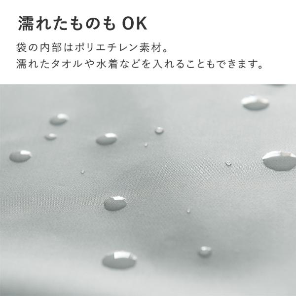 袋の内部はポリエチレン素材。濡れたタオルや水着などを入れることもできます。