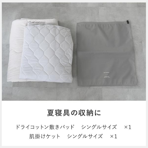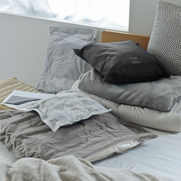 ライトグレーもしくは、チャコールグレーの2枚セット。どちらも主張は控えめ、インテリアから浮かないカラーリングです。衣類と寝具で使分けるのも◎。