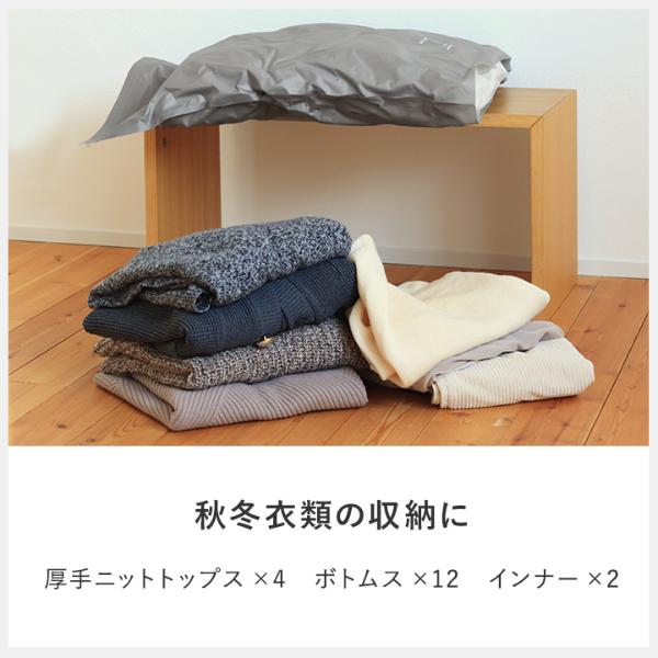 ※羽毛布団やダウンなどは機能性がそこなわれる可能性があるため使用をお控えください。衣類の場合、シワになりにくいものの収納を推奨しています。