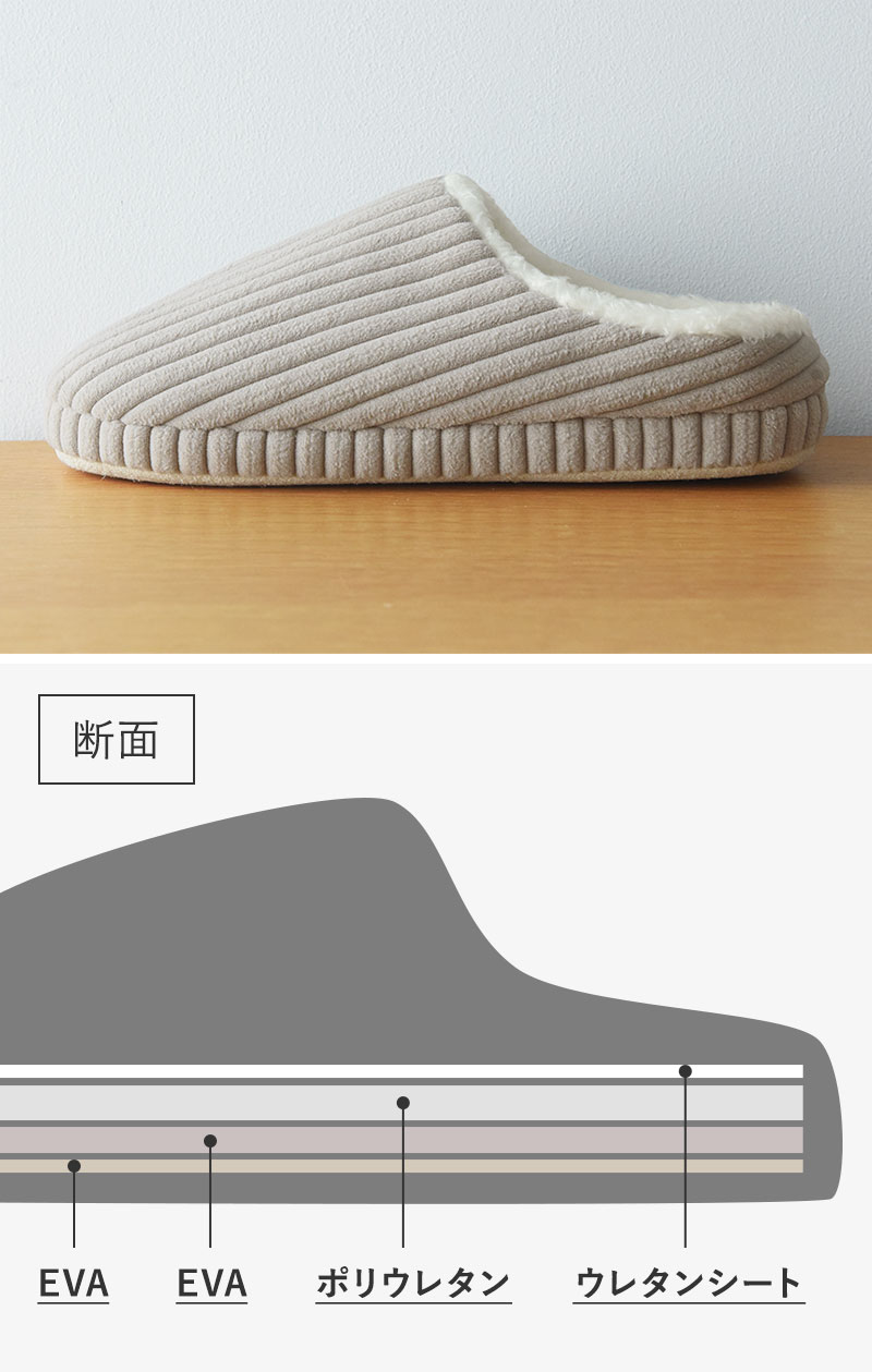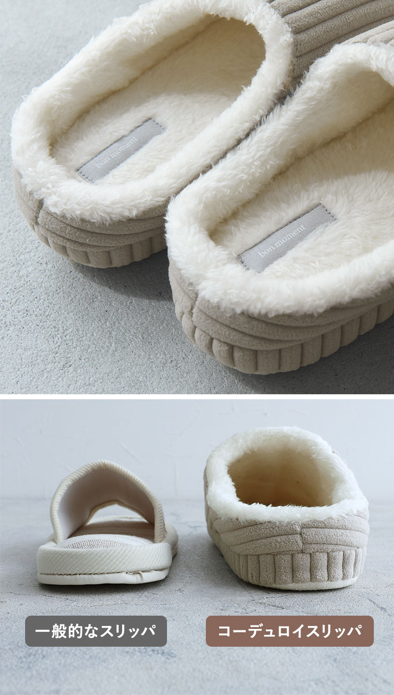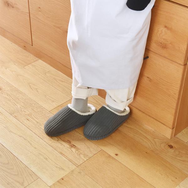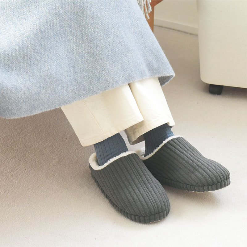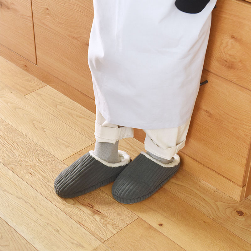 - ふんわり裏ボアのあったかスリッパが登場。2.5cmの厚みのあるソールで底冷えを防いでくれます。寒い季節に冷えがちな足元もこれならぬくぬく。冷え性さんの心強い相棒です。