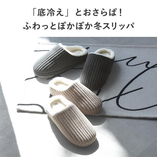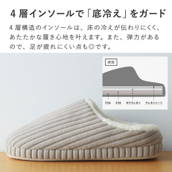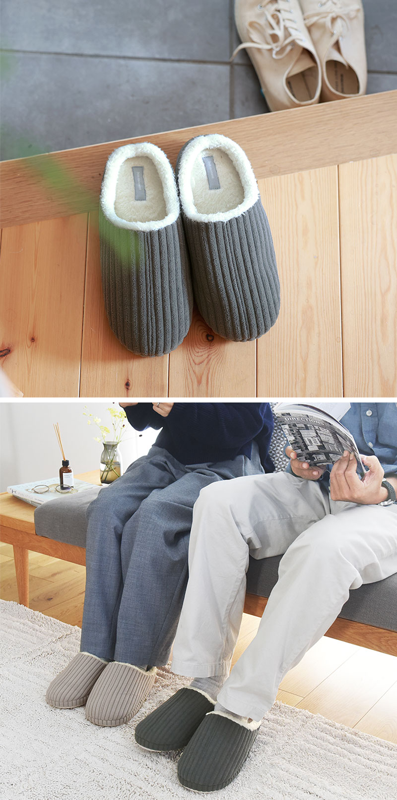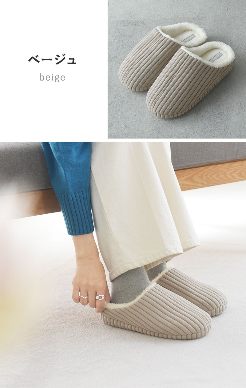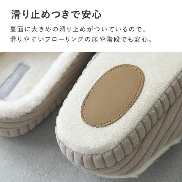 - ふんわり裏ボアのあったかスリッパが登場。2.5cmの厚みのあるソールで底冷えを防いでくれます。寒い季節に冷えがちな足元もこれならぬくぬく。冷え性さんの心強い相棒です。
