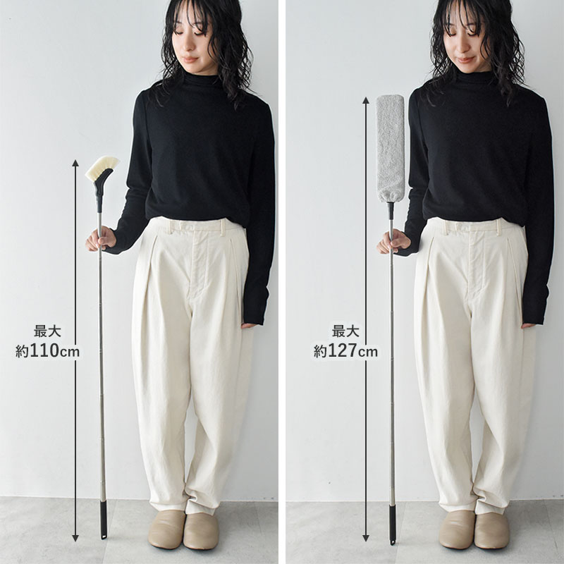 ※ポールを伸縮させる時は、ブラシ部又は先端部がしっかり固定していることを確認の上、ご使用ください。