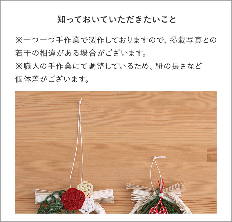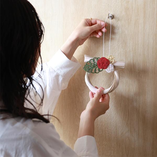 一般的に玄関に飾るイメージのしめ縄ですが、こちらはお部屋のドアやリビングにも◎。小さめのサイズ感なので、ちょっとしたスペースにインテリア感覚で飾っていただけます。