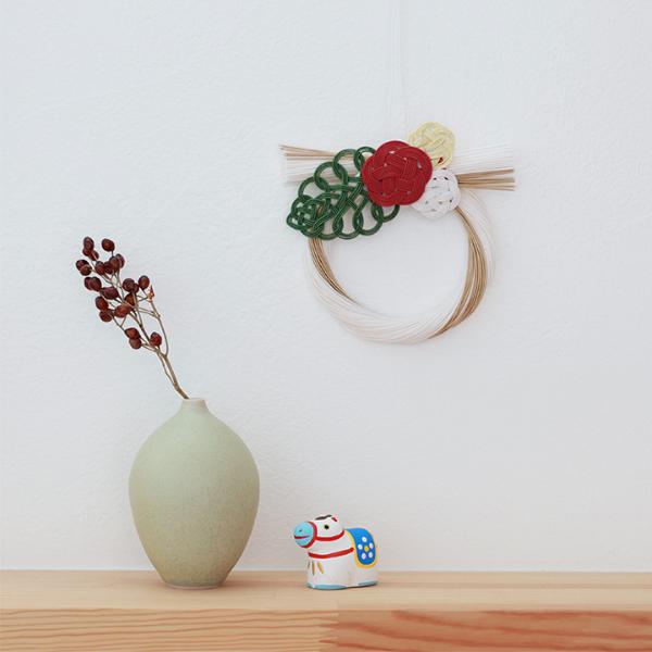 お正月らしさを演出しながらも、藁(わら)ではなく水引で形づくることで、現代の暮らしに馴染むようなデザインに仕上げられています。