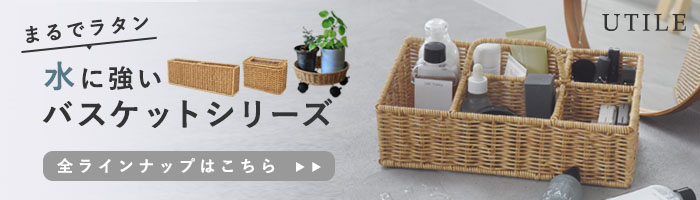 そこでUTILE(ユティル)から登場したのが、まるでラタンバスケットのようなプランターベース。ナチュラルな風合いが植物との親和性も◎。さらにキャスター付きで、重い鉢もスムーズに移動できるアイテムです。