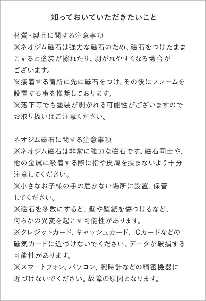 ※壁に設置する際は、平らで安定した場所を選んでください。フレームが落下すると破損したり、怪我の原因となります。