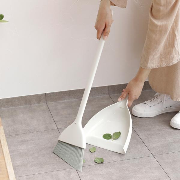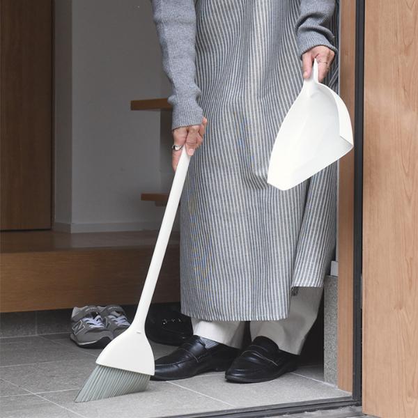 立たせてスリムに収納できる、ほうき&ちりとりセット。