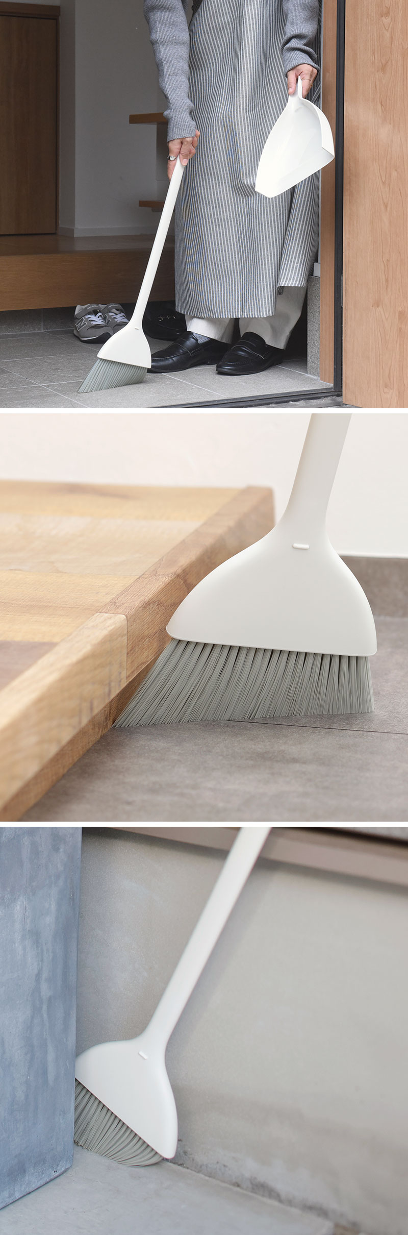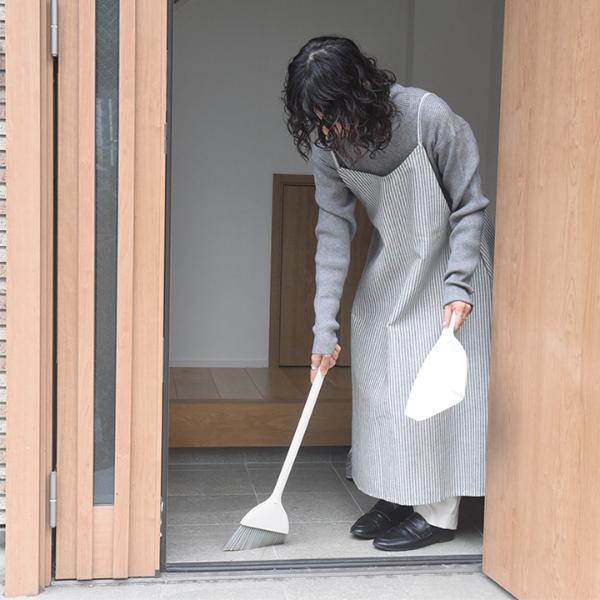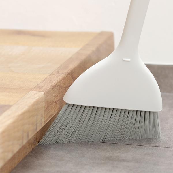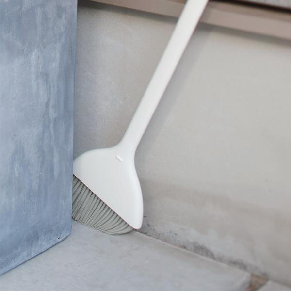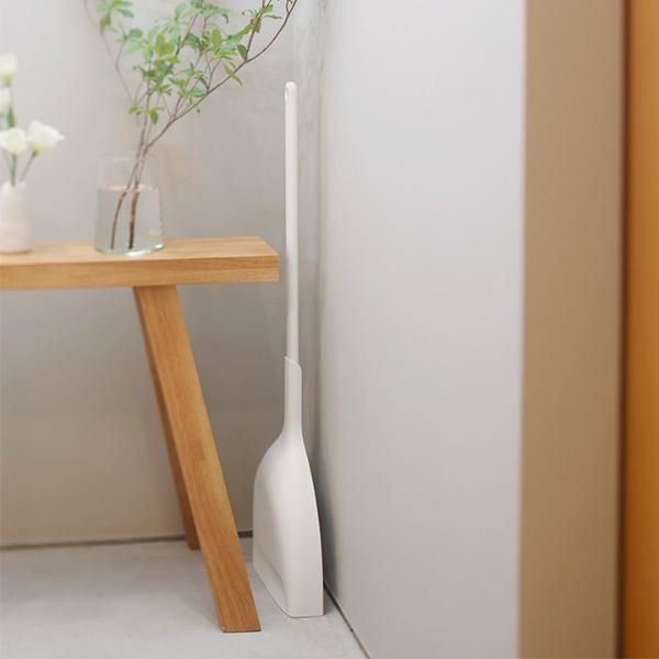 ちりとりの持ち手にほうきをセットすると、ブラシ部分を浮かせながら立てることができます。毛先が床に着かず、型崩れしにくいのもポイント。