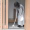 最大幅約5.3cmの薄型設計で、玄関のちょっとした隙間に立てておけます。持ち手先端には穴が開いているので、フックにかけて収納することも。