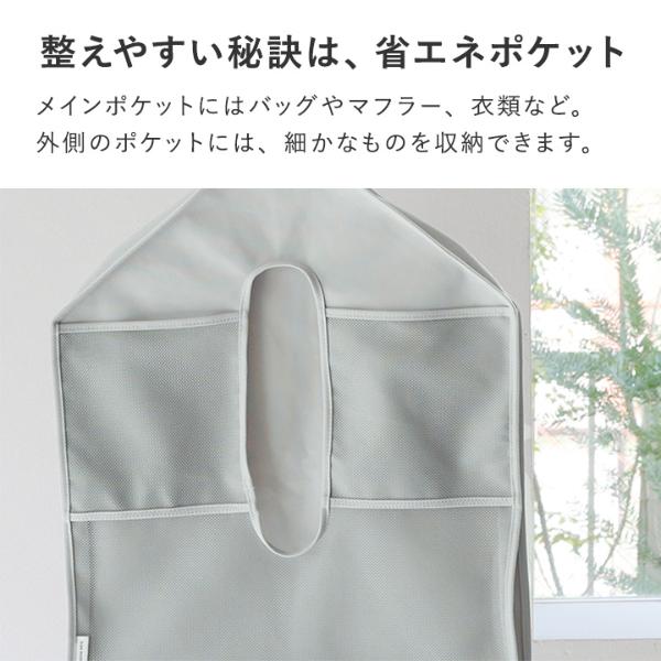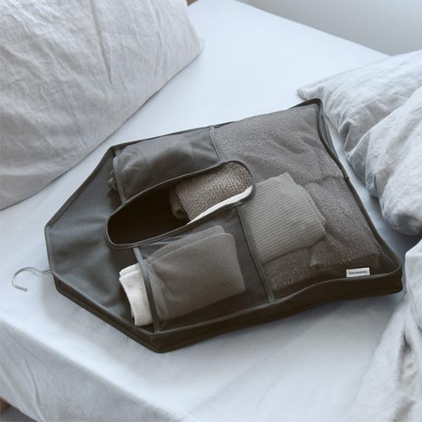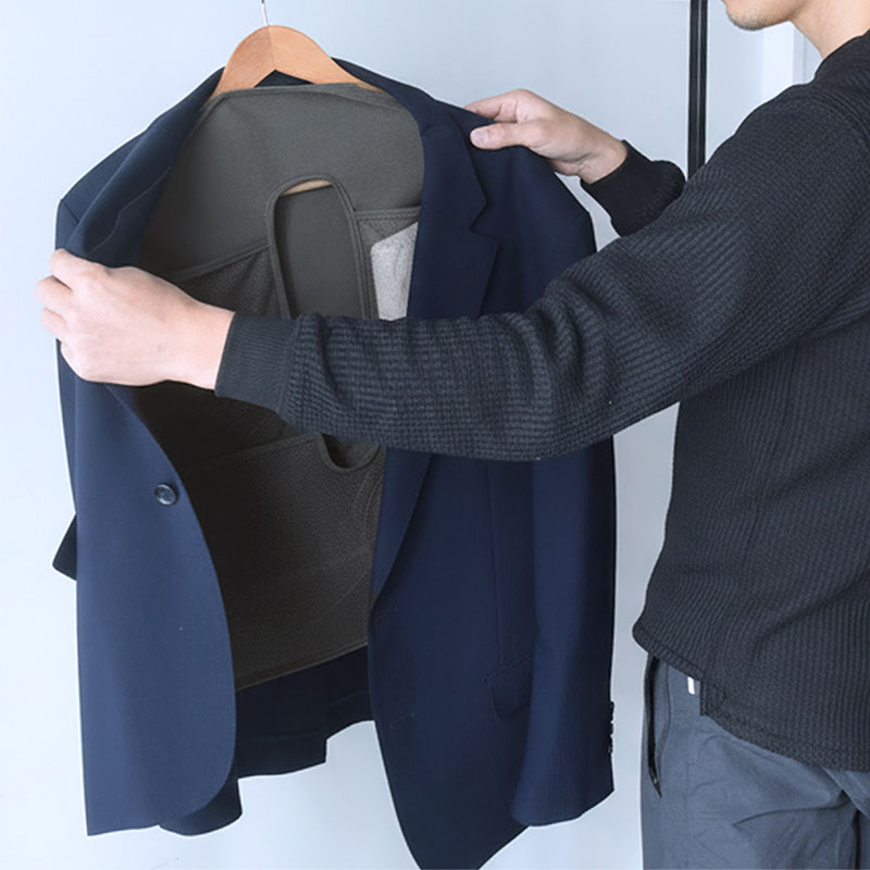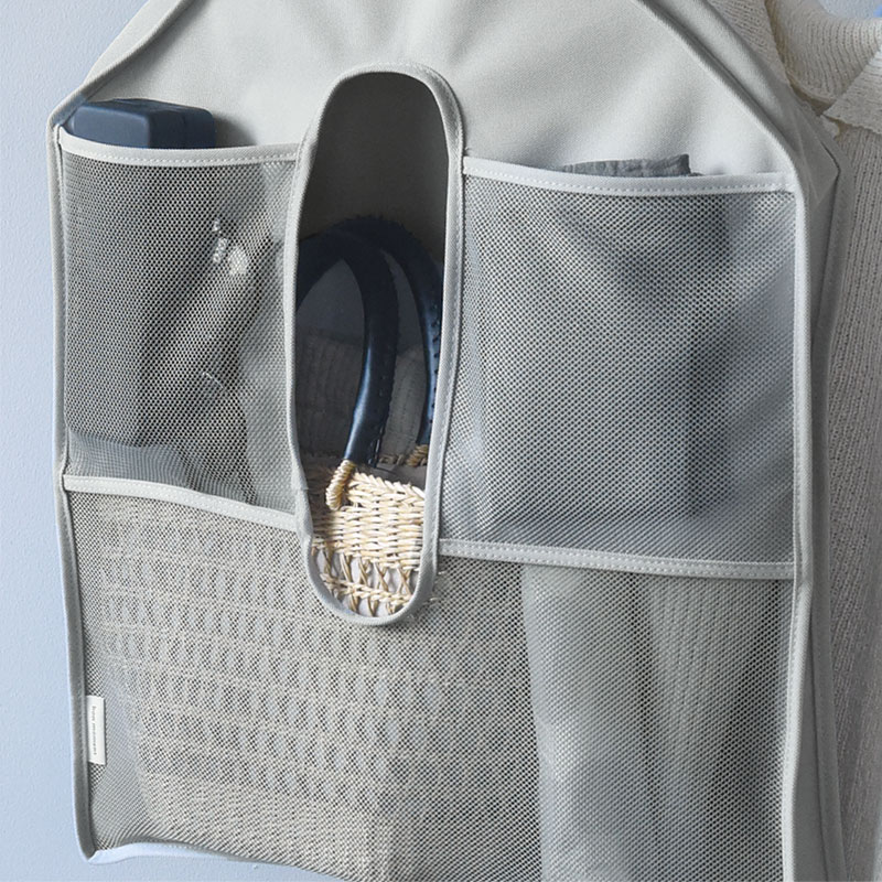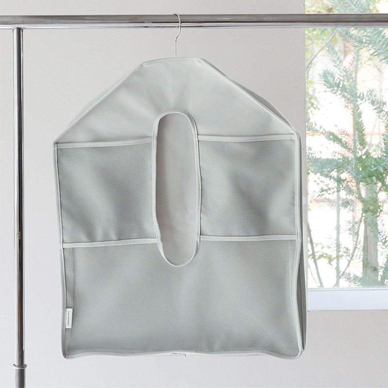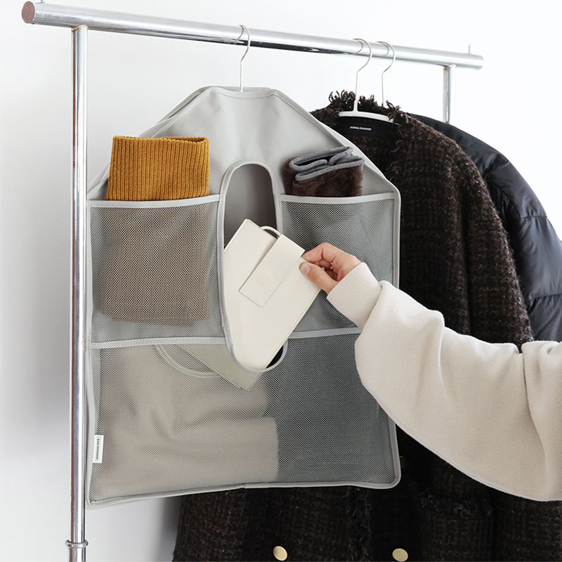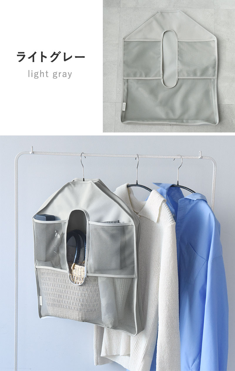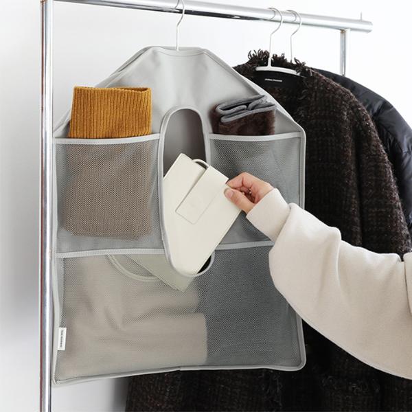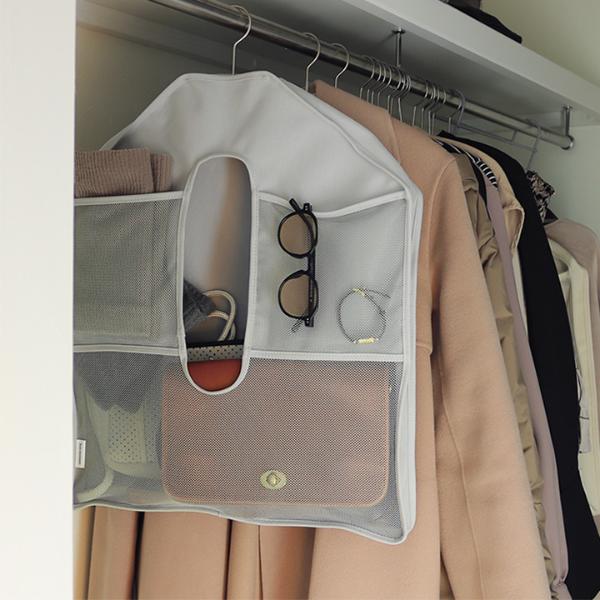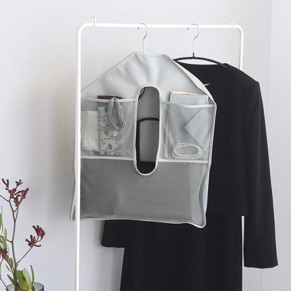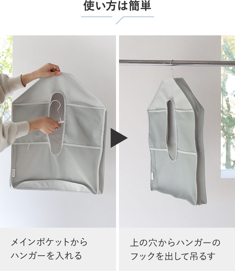 お手持ちのハンガーに取り付けてクローゼットやラックに掛けるだけ、省スペースに収納を増やせます。