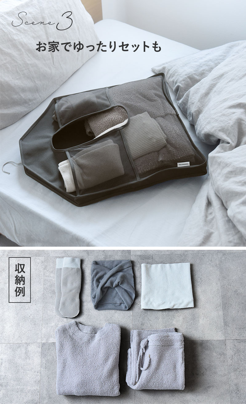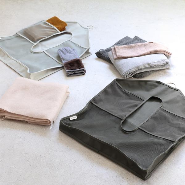 メインポケットにはバッグやマフラー、衣類などかさばるものを。外側のポケットには、手袋やくつ下など細かなものを収納できます。