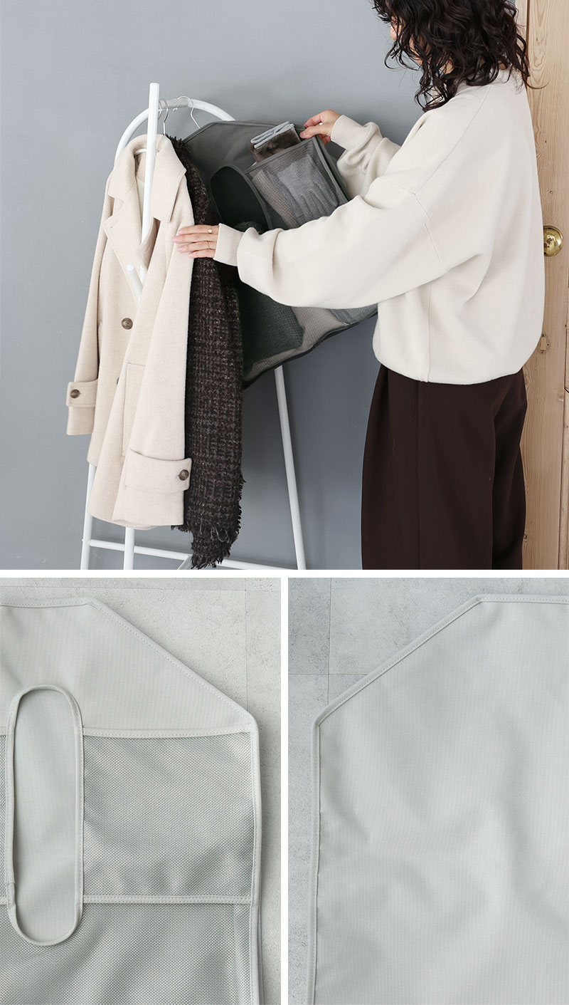 コートやジャケットをかけても良し上からコートをかけることもできるので、お出かけアイテムや冠婚葬祭・仕事用の制服などをひとまとめにすることもできます。