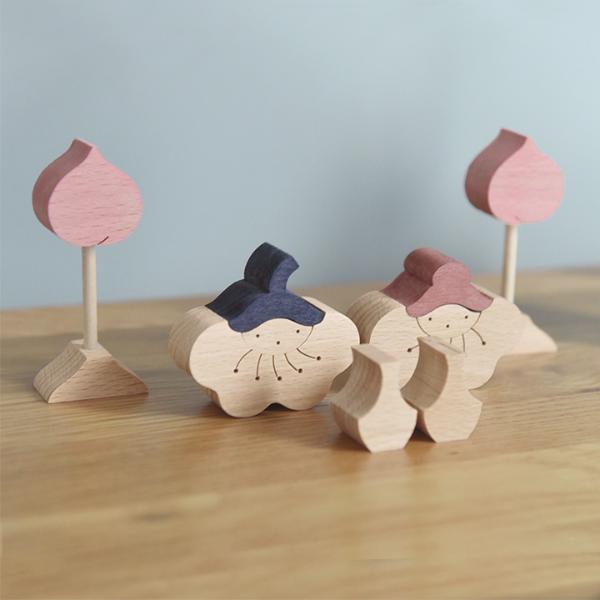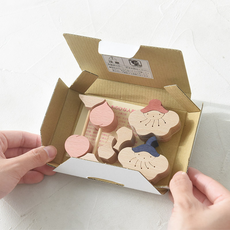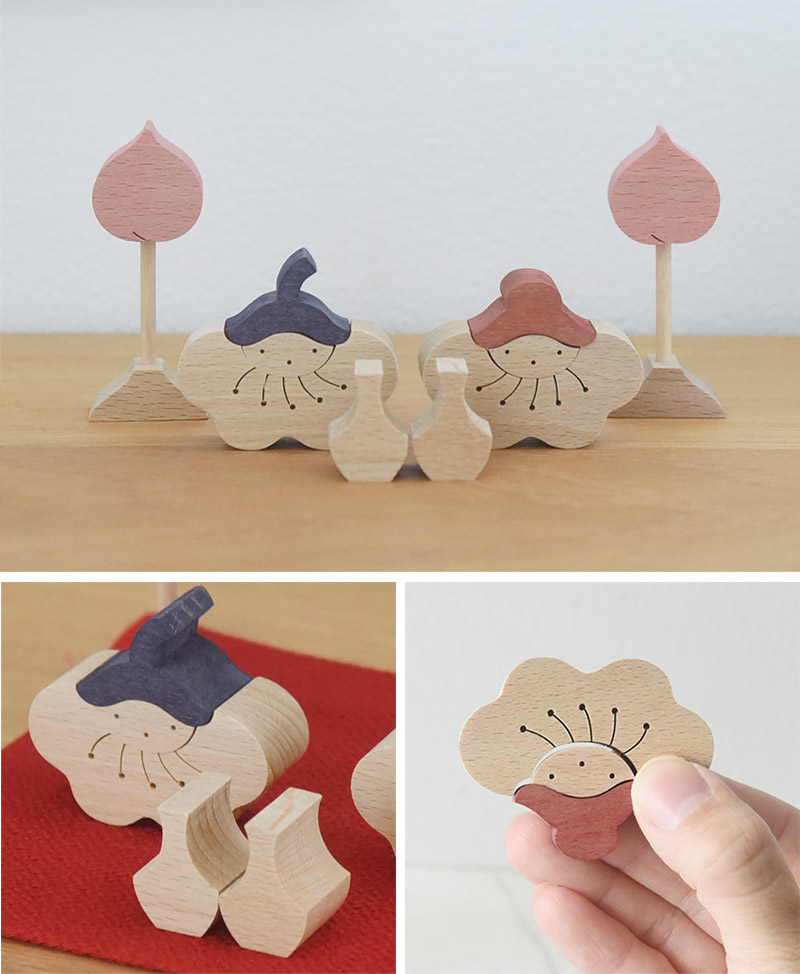 その昔、ひな人形は“ひいなあそび”として子どもたちが手にとって遊べる道具でもあったそう。 今では厳かな雰囲気をまとっていますが、「昔のように気軽に子どもたちが手に取れたら。」そんな想いから生まれたのが、小黒三郎さんの組み木人形です。